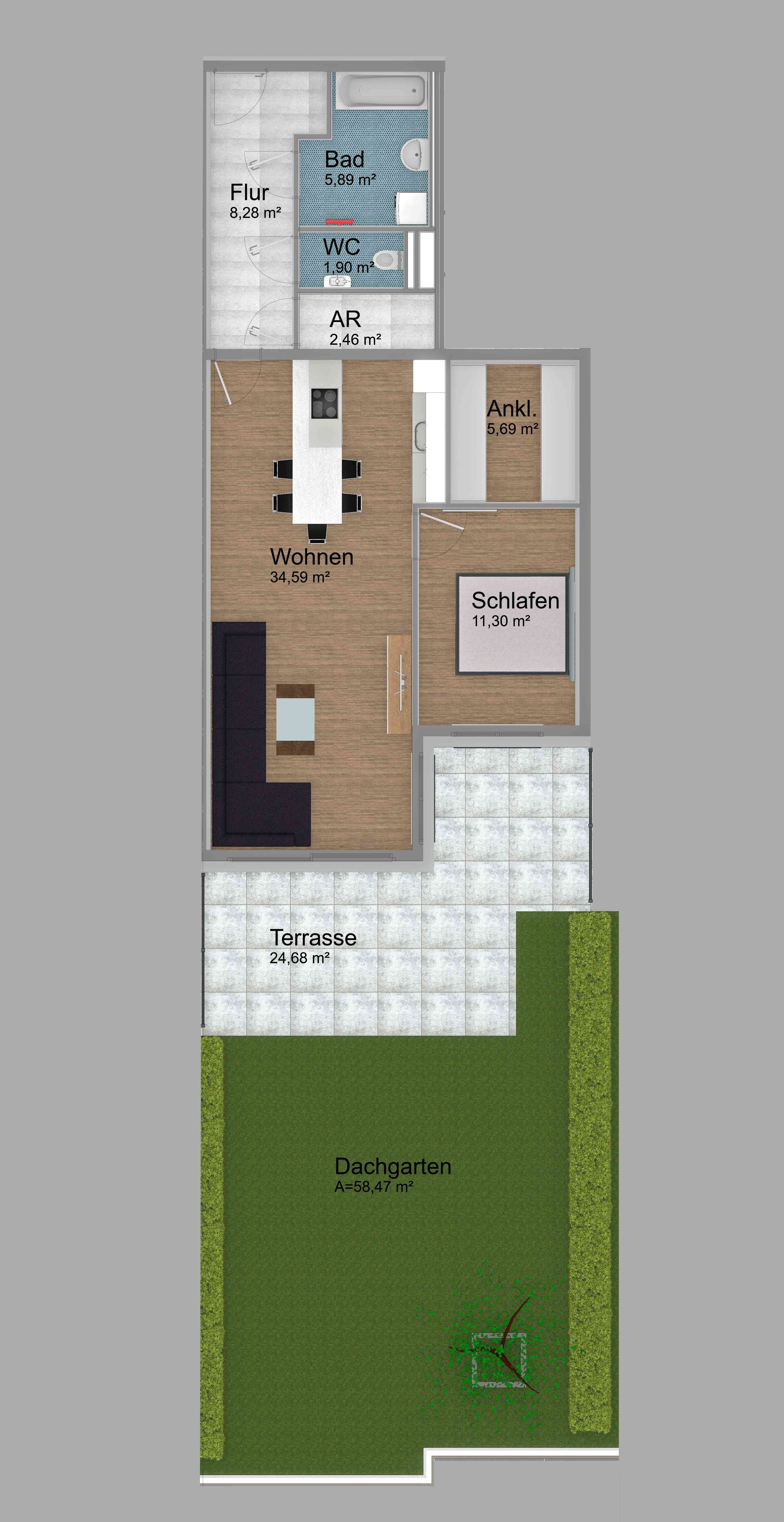 Dachgarten: ca. 58,47 m²